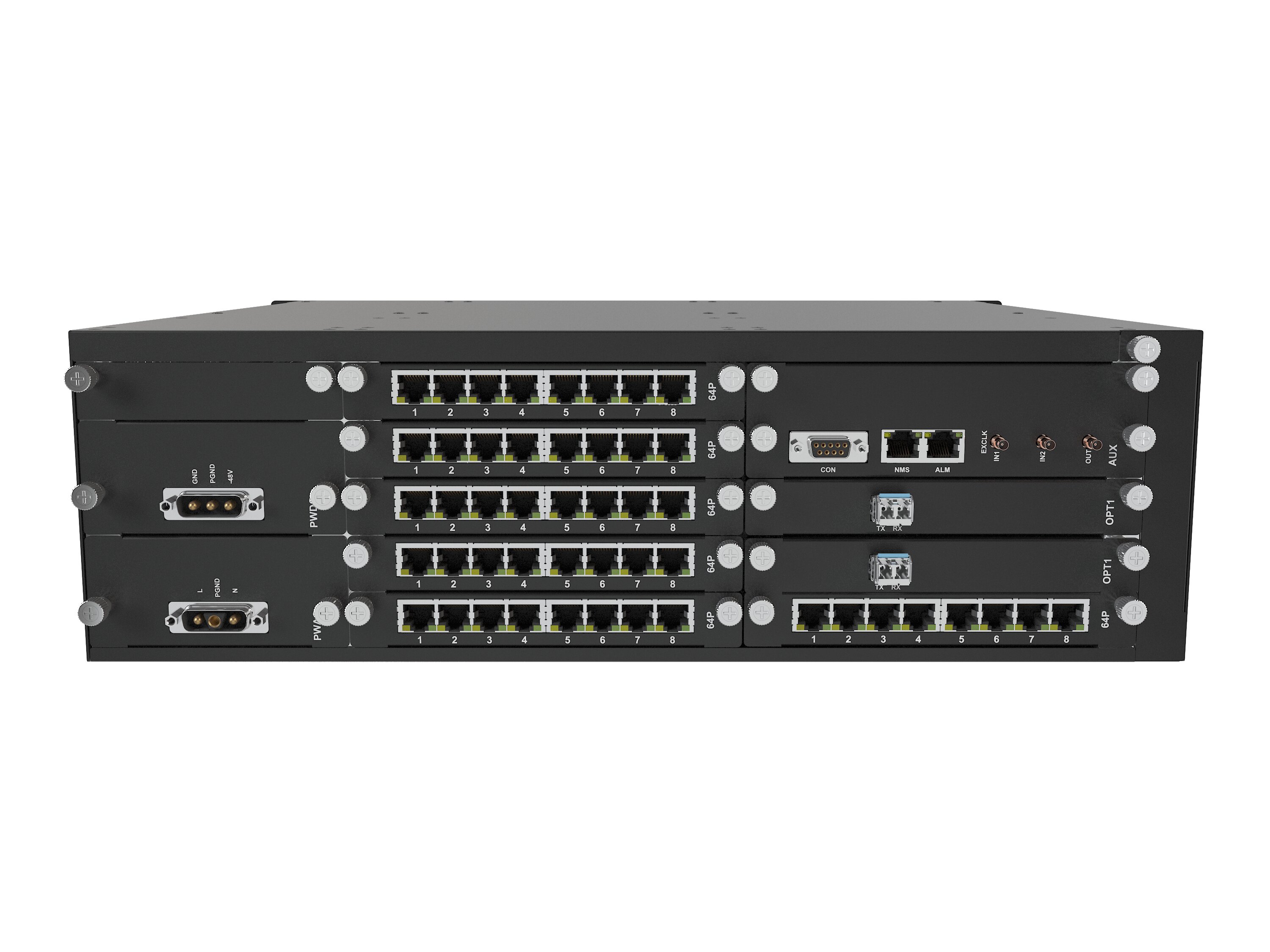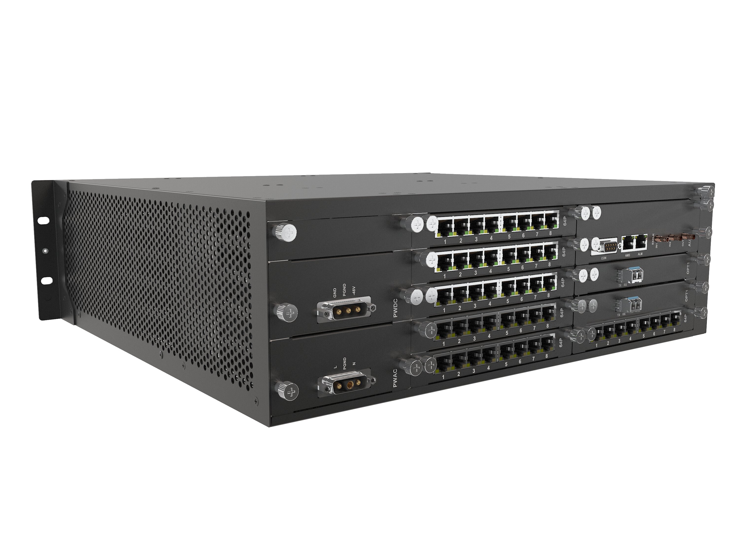 The PT-30 3016 intelligent digital distribution frame system adopts 3U high and standard 19 inch rack. one device supports full cross-connection for 96 E1 channels, and the system is equipped with 2 x 2.5G optical interfaces, supporting ring, link and star networking topologies.