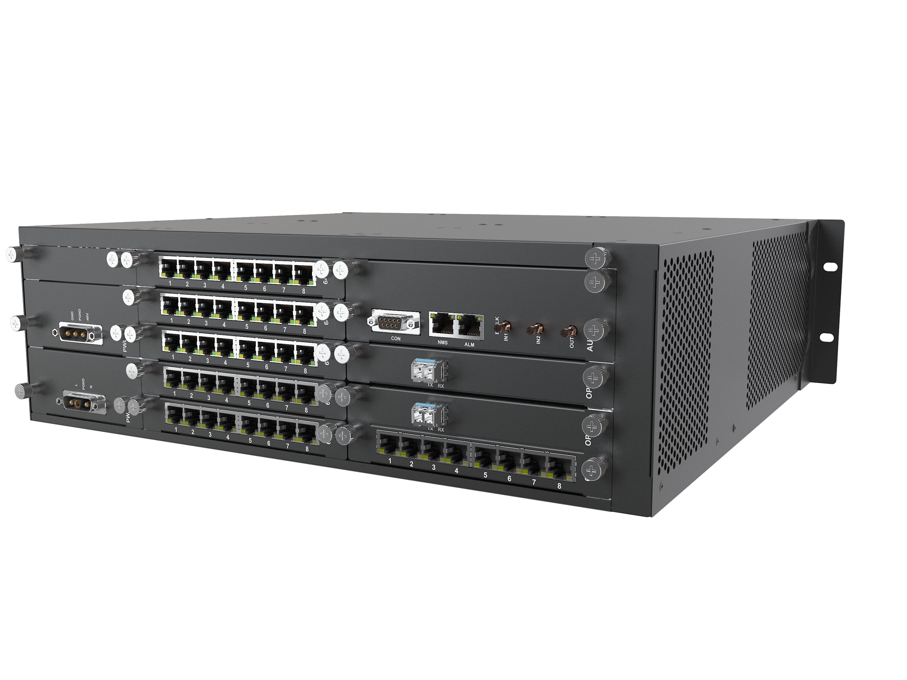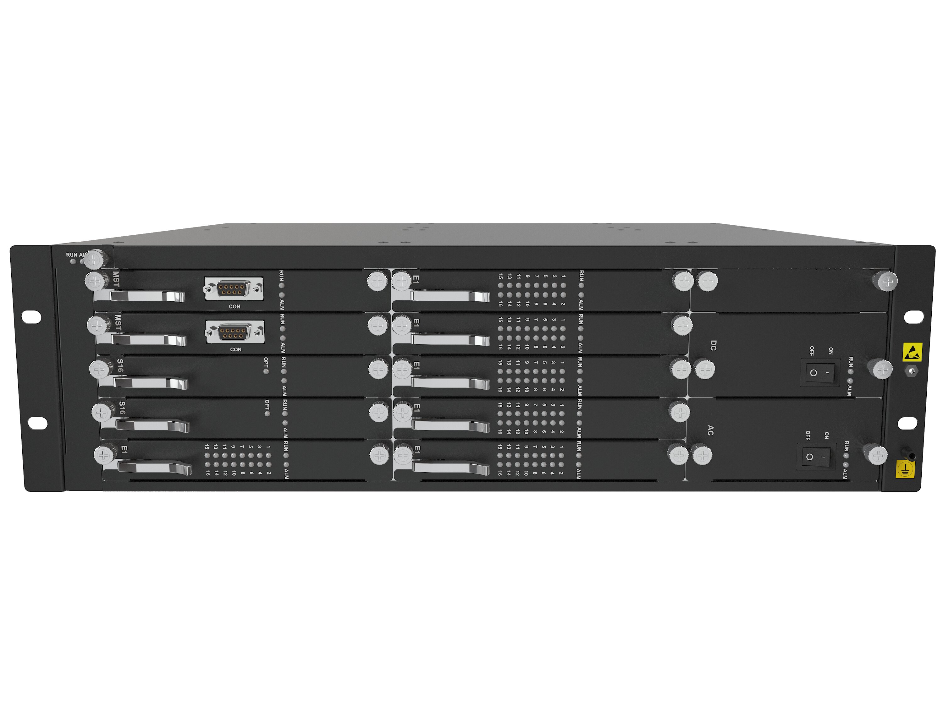 The PT-30 3016 intelligent digital distribution frame system adopts 3U high and standard 19 inch rack. one device supports full cross-connection for 96 E1 channels, and the system is equipped with 2 x 2.5G optical interfaces, supporting ring, link and star networking topologies.